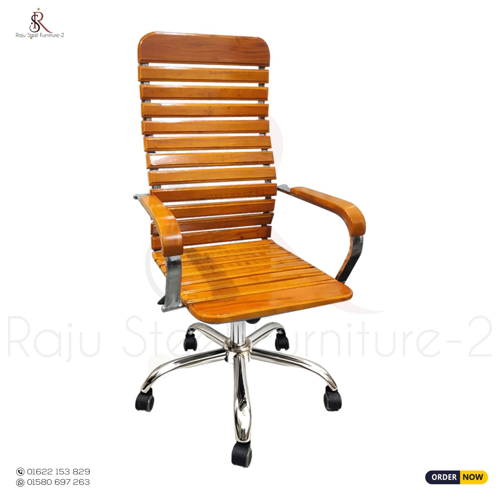 রাজু স্টীল ফার্নিচার-২ এর RS-01 মডেলটি তৈরি হয়েছে ফুল বডি ৩/৪ এস এস পাইপ স্ট্রাকচারের উপর মেহগনি কাঠ লাগিয়ে লেকার পলিশ ফিনিশে, যা দেয় প্রিমিয়াম লুক ও দীর্ঘস্থায়ী ব্যবহার–যা দীর্ঘসময় বসেও আরামদায়ক অনুভূতি দেয়।